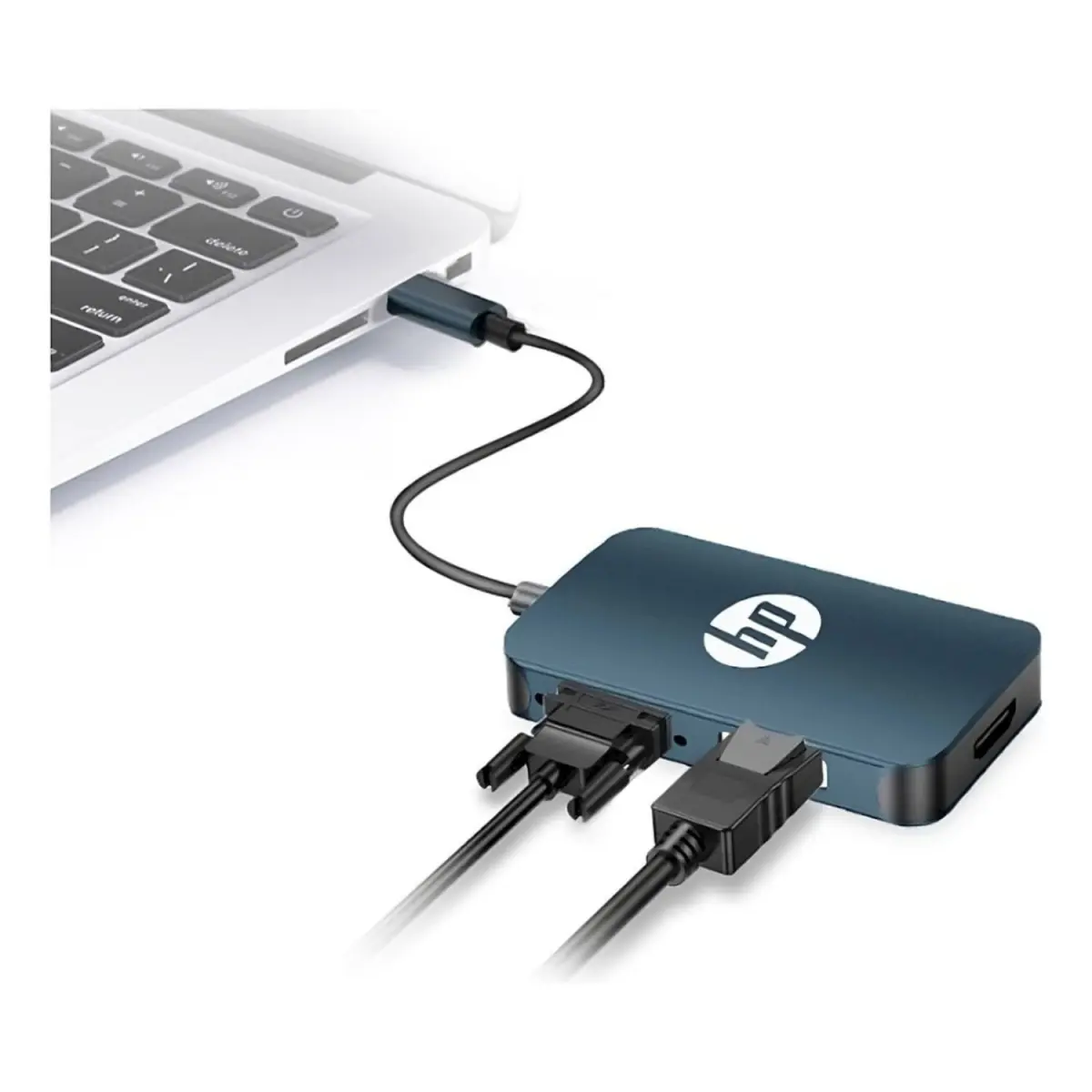 Convierte el puerto USB-C de tu notebook o tablet en salidas de video HDMI, VGA y DisplayPort con este adaptador HP compacto y portátil.